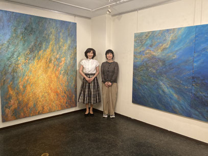 大作一つに3年もの月日を掛けたとの話を聞き、改めて色彩の美しさや陰影、複雑な塗料の重なり具合に目を見張り、絵から迫まり来る躍動感やエナジーを感じる作品に感嘆のため息を漏らした。彼女のテーマは『揺らぎ』らしく、まさにそのものである。